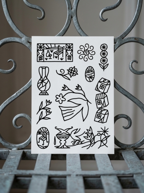 “Jardin d’été” est une planche de tatouages éphémères imaginée avec l’artiste Le Point Carré, qui explore un univers naïf, minimaliste, poétique et vibrant, toujours baigné de lumière.
